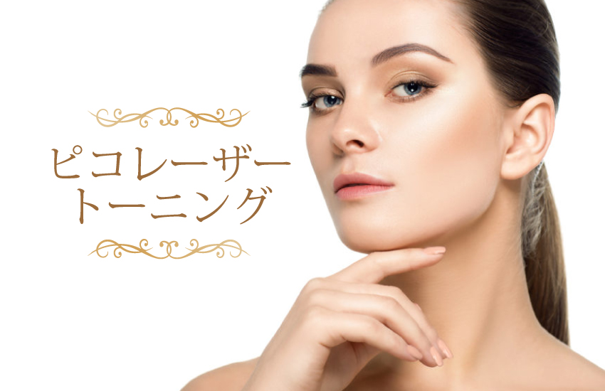 ピコレーザートーニングは、ピコレーザーで低出力のレーザーをシャワーのように照射し、シミやそばかす、肌のくすみの原因となるメラニンを破壊する美肌治療です。弱いパワーで照射することで肌に刺激を与えずに効果を出すことができるため、刺激によって悪化してしまう肝斑の治療も可能です。また、毛穴の開き改善にも効果的です。