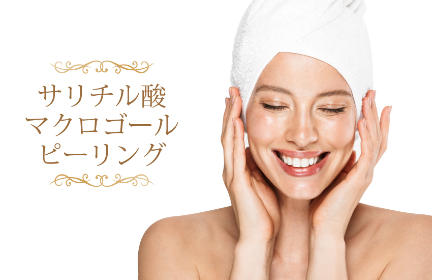サリチル酸は、肌のくすみや肌質を改善させる効果があり、美白も期待できます。また、ニキビ、ニキビ跡、毛穴の開き、しわ、たるみにも効果があり、少ないダウンタイムで美肌治療をしたいという方にぴったりの施術と言えます。