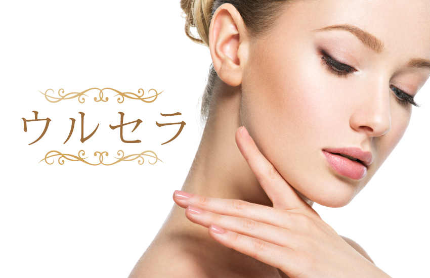ウルセラは、「HIFU(ハイフ)=高密度焦点式超音波」を照射することで、気になるフェイスラインや顔のたるみを引き上げる切らないリフトアップ治療機器です。頬やアゴ下、額、目尻、こめかみなどの顔の気になるたるみやフェイスラインを改善することができます。